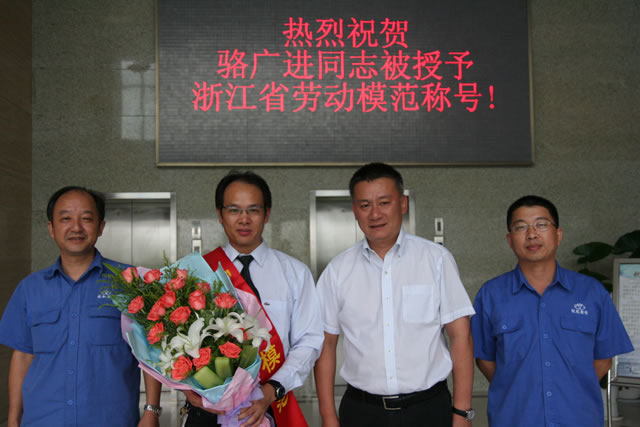 在新中國(guó)成立60周年之際,9月28日,浙江省人民政府在省人民大會(huì)堂隆重舉行“浙江省勞動(dòng)模范表彰大會(huì)”,我公司駱廣進(jìn)同志被授予浙江省勞動(dòng)模范榮譽(yù)稱號(hào)。