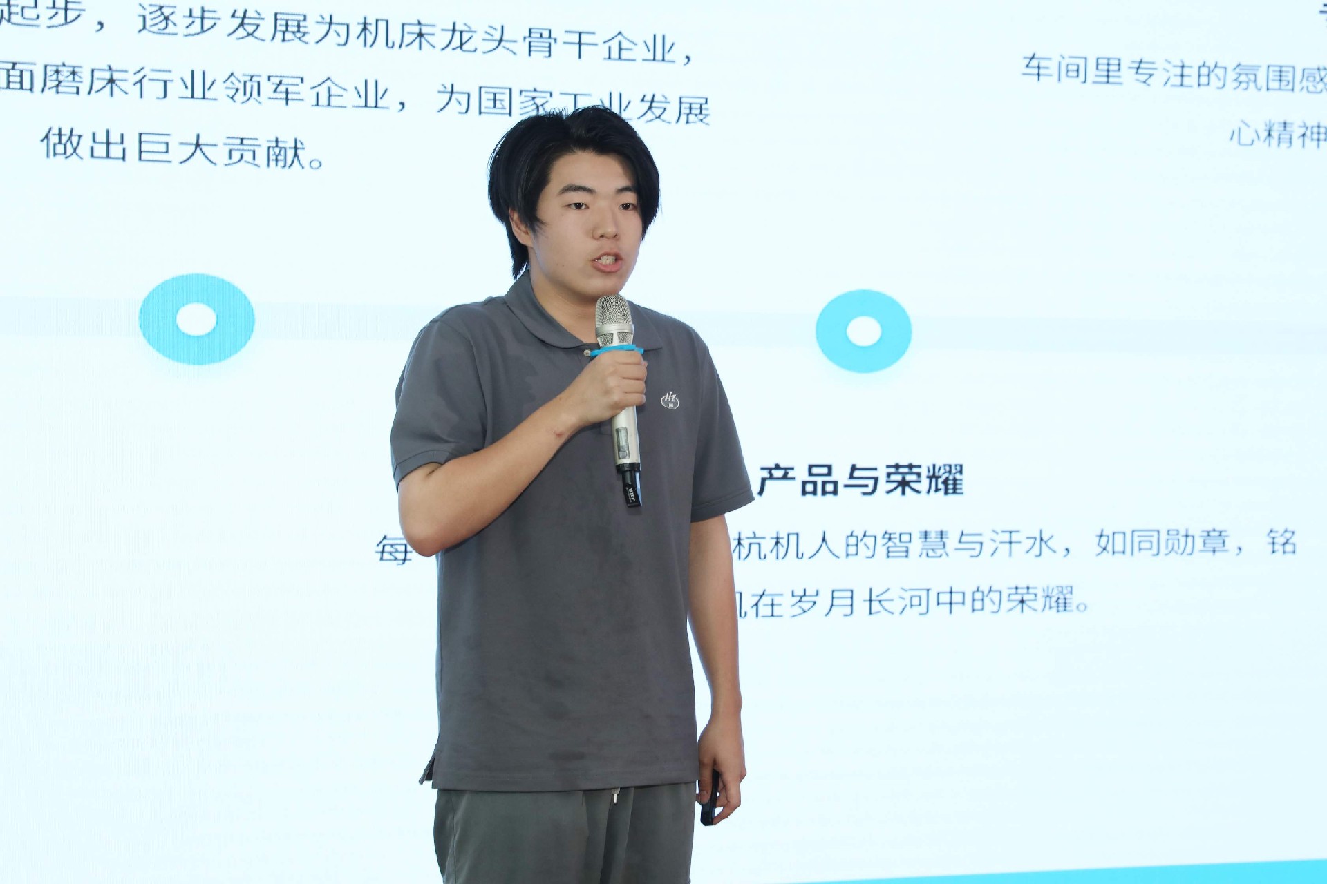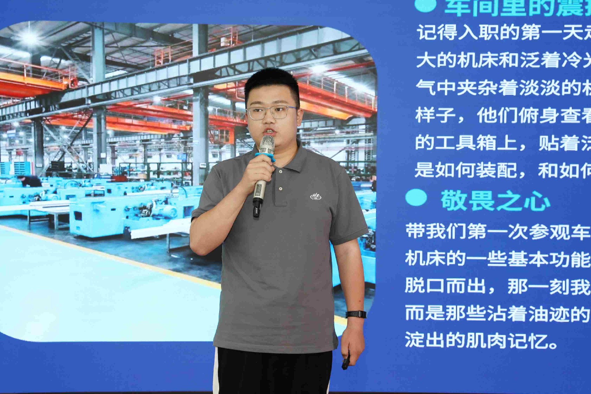 決賽現(xiàn)場(chǎng),16名來(lái)自不同崗位的參賽選手依次登臺(tái)。他們中既有扎根車(chē)間三十載的老技工,也有青年研發(fā)工程師,更有新入職就感受到滿(mǎn)滿(mǎn)杭機(jī)力量的新員工。演講內(nèi)容緊扣“匠心傳承”“智造突圍”“黨員先鋒”等關(guān)鍵詞,配合多媒體視聽(tīng)呈現(xiàn),引發(fā)陣陣掌聲。